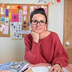 I’m Alexandra, a French artist living in the UK with my family (I am a mother of two home-educated children). I spend most of my free time creating, whether it’s designing patterns or playing with clay, always drawn to the beauty of an imperfect mark or texture. I wish to express joy and playfulness through my use of shapes and colours. My go-to techniques to create vibrant artwork are painting, printing and collaging. I like being spontaneous when I work so intuition and serendipity play a big part in my creative process as I believe authentic artwork only arises from a place beyond mental control, a state-of-mind I’d like to carry over in my daily life.