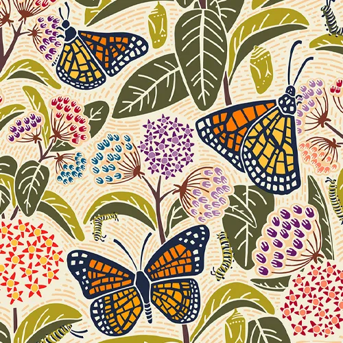 My inspiration is often found while taking nature walks and then capturing photos along the way. I begin by hand drawing either in a sketchbook or my iPad before taking all of the elements over to Adobe Illustrator to build out a pattern. I love experimenting with a range of color palettes, from soft and feminine to bold and vibrant.