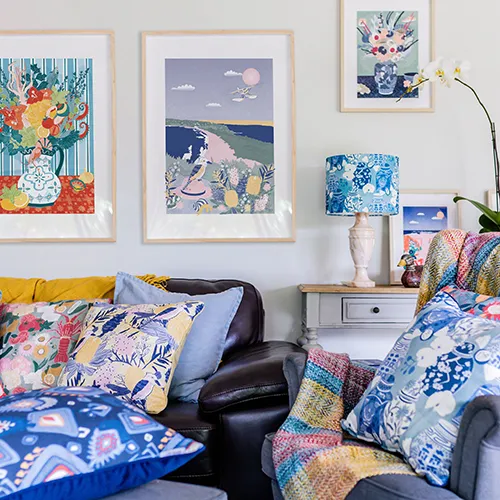 I work with clients on both custom projects and licensing, and I love collaborating with brands to bring their vision to life. Alongside this, I’ve developed my own small range of homewares, including napkins, cushions and art prints, designed to add a pop of colour and personality to everyday spaces.