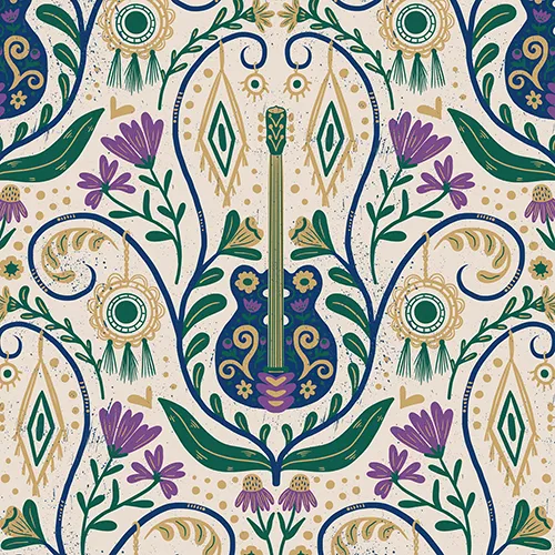 I earned my bachelor’s degree in visual communication, then later went back for my MA and MFA in Digital Printmaking. I’ve always had one foot in fine art, and the other in graphic design, and surface pattern design is where those two sides meet.
