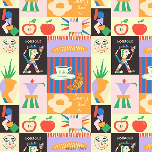 Atelier Mave is a bridge between childhood and adulthood, a place to bring color and creativity, a kaleidoscope of ideas and emotions that Berry conveys through her passion for illustration, storytelling, and attention to detail to bring joy into people’s lives. Berry likes making papercut collages, creating artworks with gouache or pastel paints, or digital paintings.